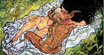 Aqui, os rostos dos dois amantes estão "parcialmente escondidos,