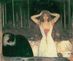 Foi uma escolha difícil. Mas "Cinzas", de Evard Munch (1863-1944), é um quadro em que "as cores, as tonalidades, os contrastes, o movimento gestual das personagens, as expressões dos rostos, a posição do corpo e das mãos nos atiram para uma paisagem muito próxima do teatro e da poesia", explica Jaime Rocha, poeta e dramaturgo. Talvez por isso o "leia" como uma peça de teatro. "Um homem em ruína e uma mulher fatal, num espaço de representação, desesperam após terem consumado uma ruptura. Poderia ver esta cena em palco, tal é a sua força, numa peça de Ibsen, de Beckett, de Shakespeare, de Strindberg, de Lorca ou em pose de actores do teatro japonês estilo Nô", diz Rocha. Esse lado "fortemente literário" (em que se sentem marcas de Dostoiévski, Ibsen, Strindberg, Baudelaire, entre outros), "de uma crueldade e de uma secura que arrepiam", fez de Munch um dos "pintores de culto" de Jaime Rocha. O que há de especial nele? "Essa visão permanente do corpo que em Munch nunca é estático, a carga dramática que imprime às figuras, a sua beleza convulsa, a envolvência poética, o traço sedutor e fantasmagórico, os enquadramentos geométricos, o tratamento da natureza", responde. Mas são sobretudo os "anjos negros", "a companhia dos mortos", "a melancolia e angústia" que marcam a vida e a obra do pintor norueguês. "E também pela sedução, pelo desencontro, pelo amor fracassado e pelo medo." Para Jaime Rocha, bastaria contemplar os quadros "A Mãe Morta e a Criança", de 1897/99, ou "A Criança Doente", de 1885/86. Ou ainda os quadros da série "O Friso da Vida", "ciclo do sofrimento e das alegrias do homem, sobretudo os da década de 90, anos em que deixou para trás as influências naturalistas e impressionistas e passou a adoptar uma nova linguagem pictórica, com uma pincelada mais expressionista, na linha de Gauguin ou Van Gogh", diz Rocha. São estes últimos que mais o seduzem, revela. Datam desta altura algumas obras-primas como: "Luar" (1893), "O Grito" (1893), "Melancolia" (1894) "Madona" (1894) "Cinzas" (1894), "Os Três Estádios da Mulher" (1894), "Puberdade" (1894), "Morte na Câmara da Doente" (1895), "O Beijo" (1897) e outros. Mas "Cinzas" foi o eleito. Porque "ilustra a ansiedade e o medo com que Munch sempre tratou, na sua obra, a relação entre os sexos", diz. O que se vê, então? "O homem está derrotado, em sofrimento, com o rosto escondido, apoiado na mão, num gesto característico em Munch (pode ver-se em "Melancolia"), vestido de preto. A mulher numa postura frontal e trágica, de olhos mortiços a fixar-nos, sedutora, com o vestido claro, aberto, a mostrar o interior vermelho. A ruptura está consumada, mas não é ainda a morte." Atrás deles há "um chão ou um leito destruído,