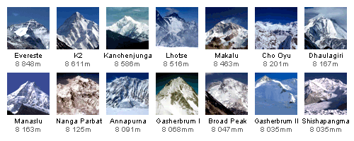 Do Evereste ao Shishapangma, há um clube restrito de picos que representam o desafio extremo do alpinismo de grandes altitudes. Em todo o mundo, são apenas 14 as montanhas que superam a barreira mítica dos 8000 metros. Belas e perigosas, elas personificam o apelo irresistível da zona da morte.
