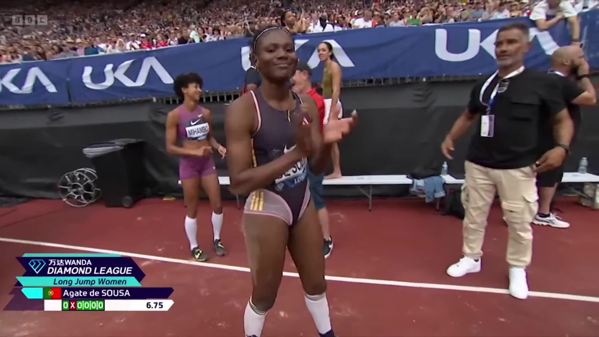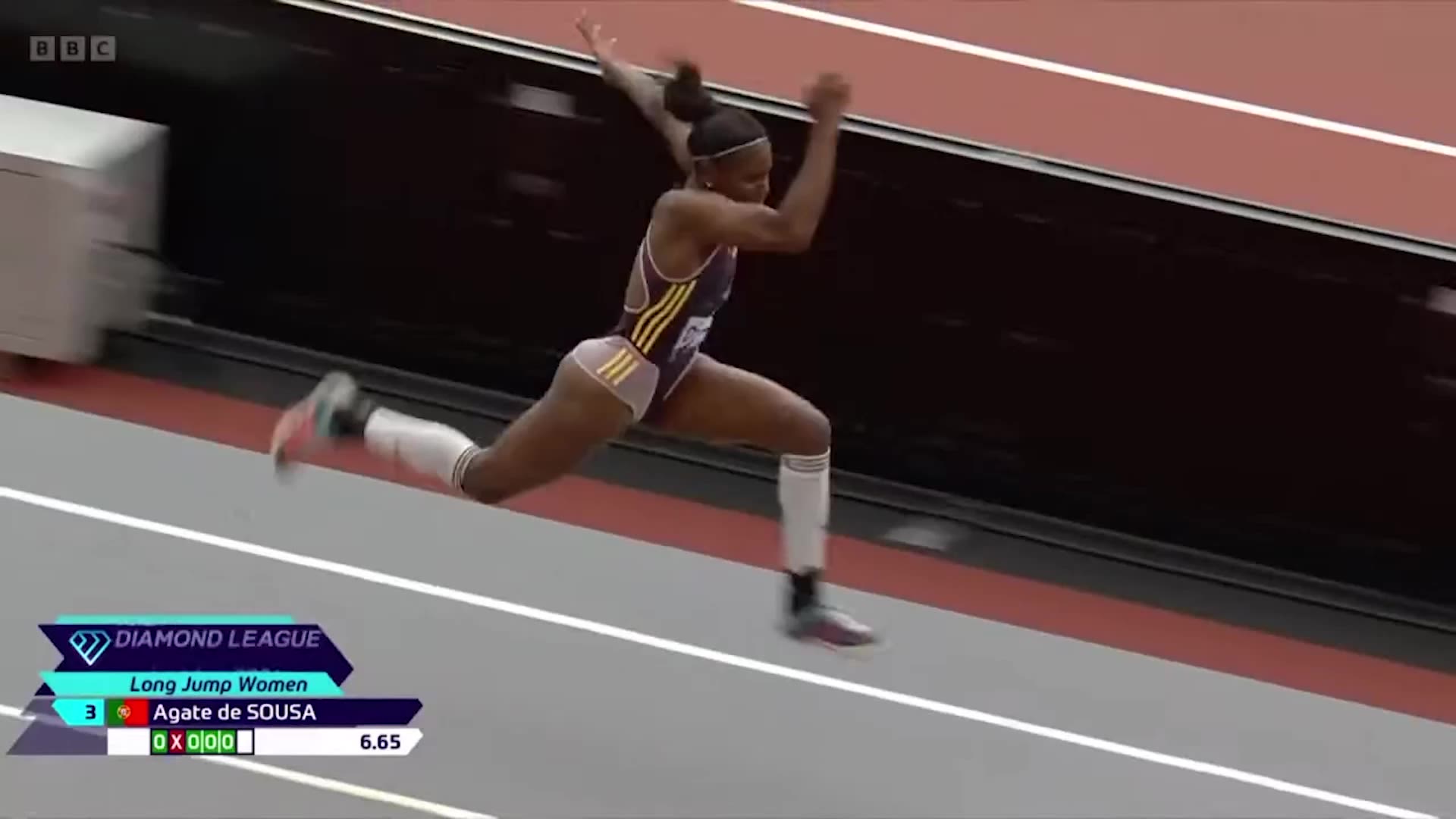 Terminou com um salto de 6,75 metros, apenas atrás da alemã Malaika Mihambo