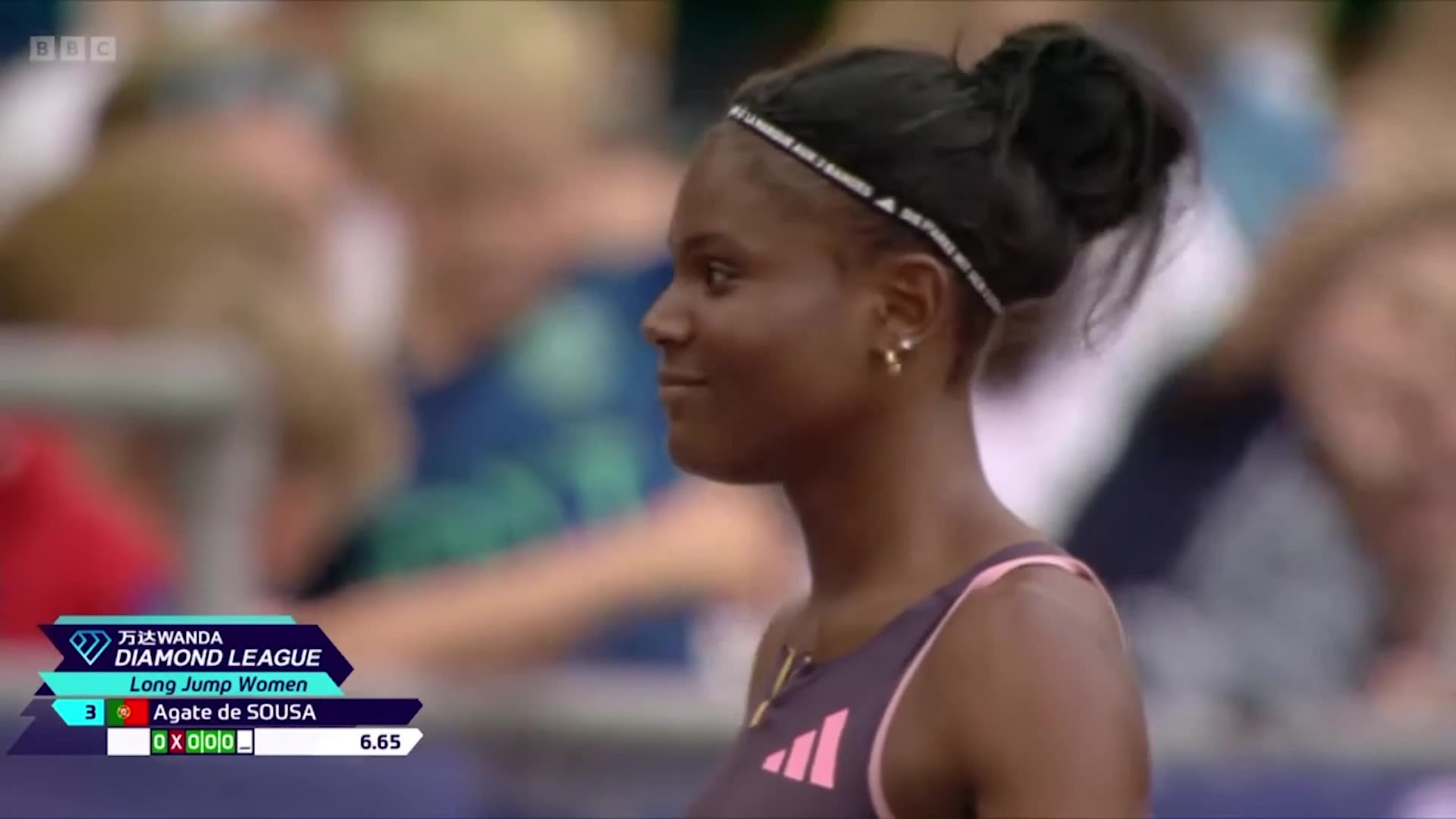 Autorizada a competir por Portugal desde 17 de Maio de 2024, depois de um processo de naturalização que demorou cinco anos, já saltou 6,91m, que lhe valeu o bronze em Roma e que faz dela a sétima melhor do ano.